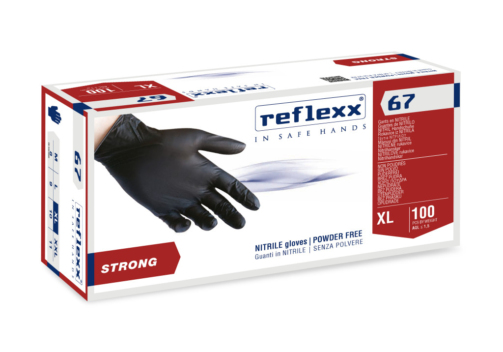 Reflexx R67 púdermentes nitril kesztyű, fekete-XL
